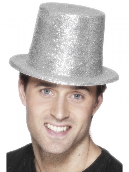 Úvod > Klobouky > Sombréra, Cylindry, Párty kloubouky > Cylindr Glitter vysoký - stříbrný